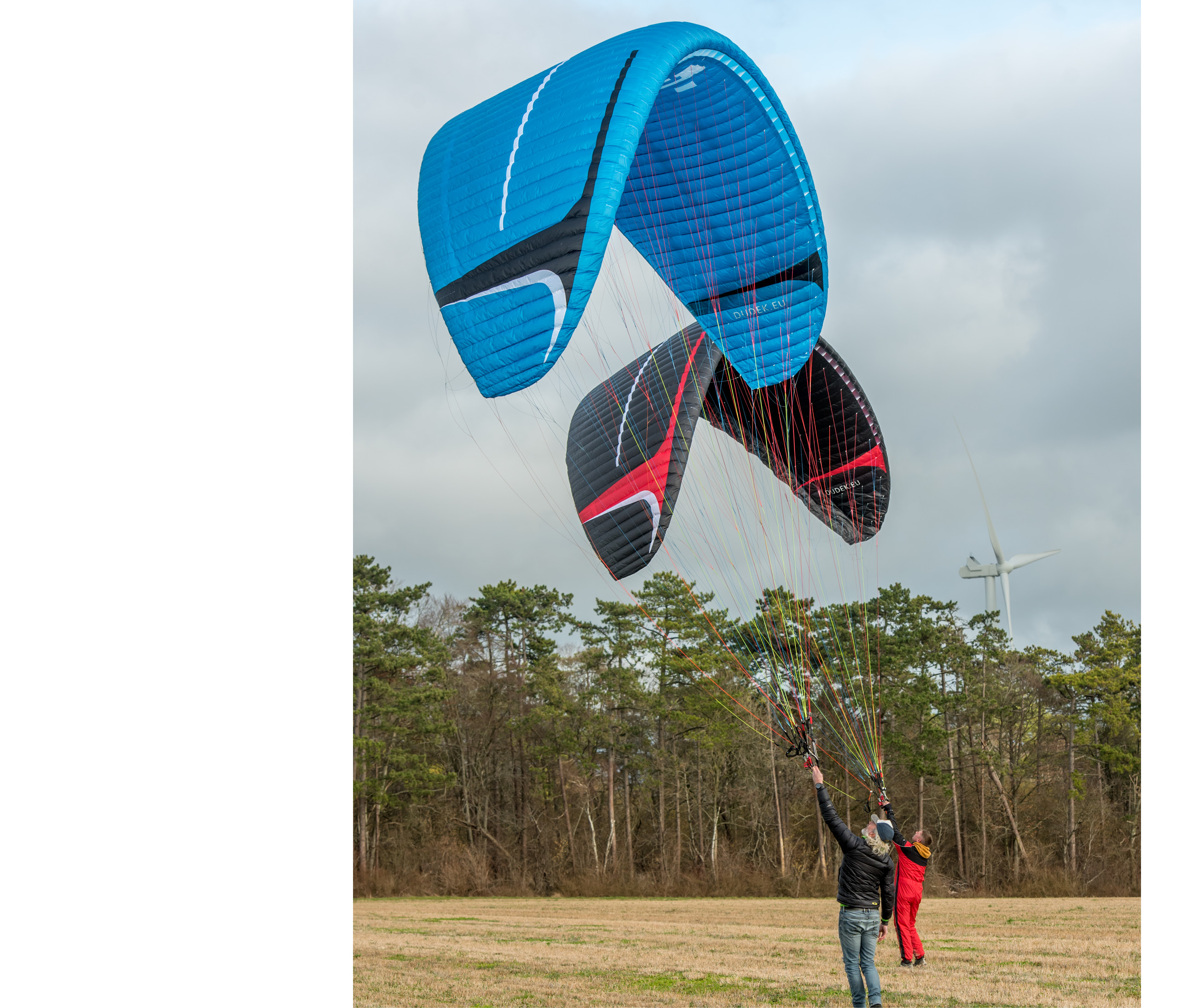 Résultat : une voile qui se place facilement au-dessus de la tête et y reste stable, pour des décollages plus sereins et maîtrisés. En l'air, nous avons gardé une grande sécurité passive avec un profil solide. L'aile est fun et accessible ! Toutes les cases sont cochées pour faire de beaux vols !