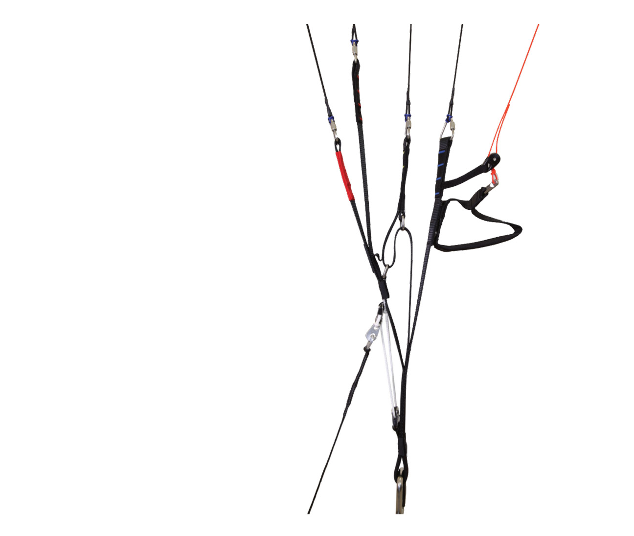 La Halo est équipée d’élévateurs très simples afin de correspondre aux attentes des jeunes pilotes. Plus précisément, cette aile possède 3 lignes qui sont très distinctes, avec une commande de frein aimantée ainsi qu'un accélérateur. Les A' sont séparé est mis en évidence pour faciliter la réalisation des oreilles.